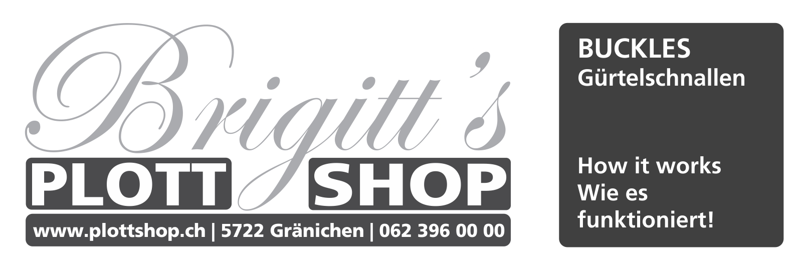 Brigitt's Plottshop - CH-5722 Gränichen - Phone 062 396 00 00 - www.plottshop.ch - Automodelle - Buckle - Gürtelschnallen - Schmuck - Pin - Pins - Sammeln & Seltenes - Buckles & Belts - Abzeichen - Ansteckpins - Anstecknadeln - Polizeimarken - Militär Badges - Harley Davidson - Hard Rock Café - Aufkleber - Decal - Abziehbilder - Plotterschriften - Beschriftungen - Werbung - T-Shirts - Sweat-Shirts - Warnwesten - Workwear - Raritäten - Sammler Online