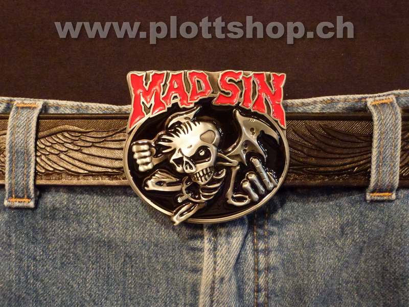 Buckle Mad Sin Skull Bat Stinkefinger Skelett