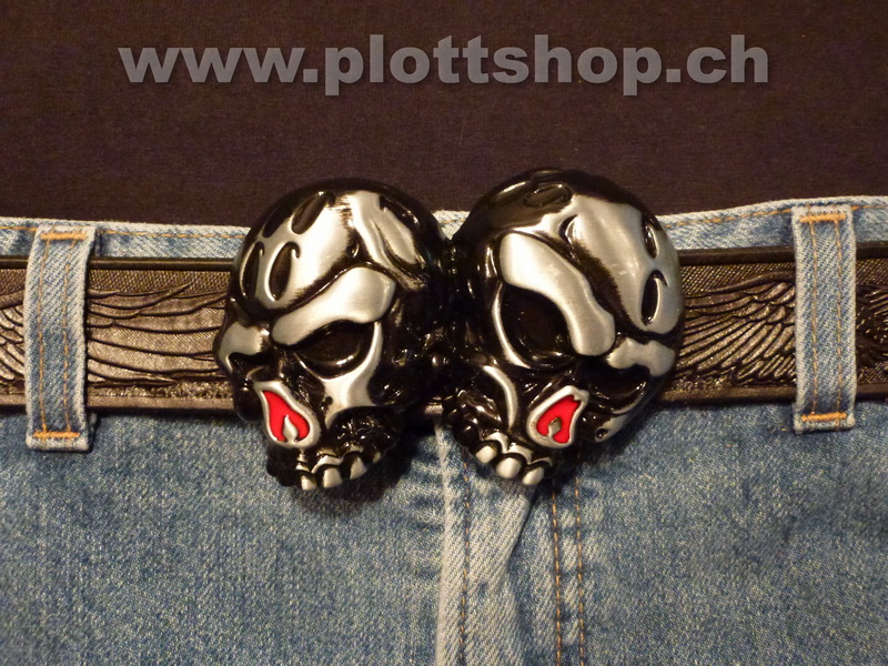 Buckle Skulls zwei Totenschädel black red