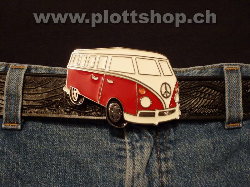 Buckle Bus Bully rot weiss Peace seventies 70er
