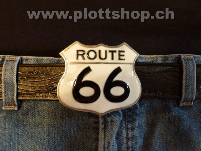 • Buckle Route 66, US Highway, Kult, USA, weiss (GU0728)
