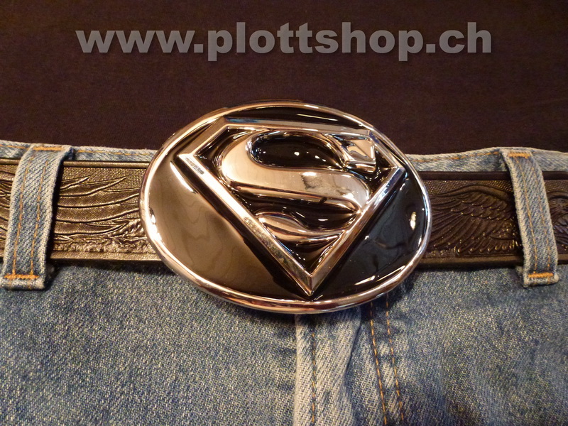 Buckle Superman Logo, chrom, schwarz