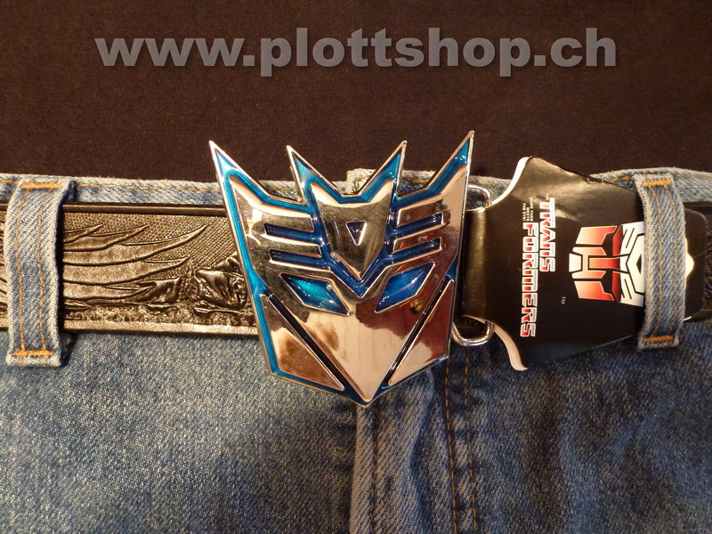 Buckle Transformers Logo, chrom, blau