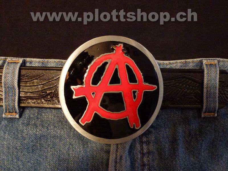 Buckle Anarchy Logo, rot, schwarz