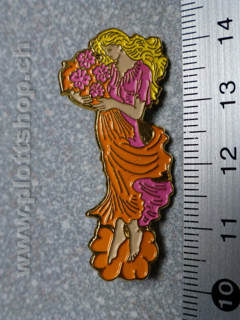 Pin Simone Erni - Mädchen mit Blumen orange