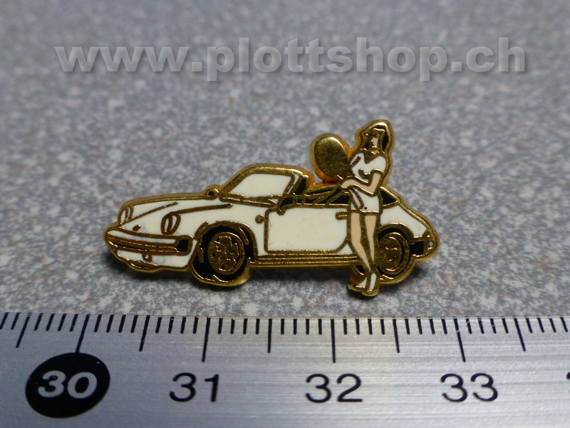 Pin Auto Porsche Cabrio weiss mit Tennis Girl