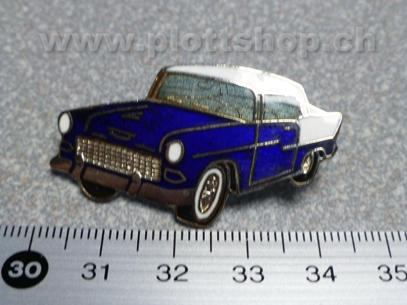 Pin Auto US-Car Oldtimer blau weiss gross