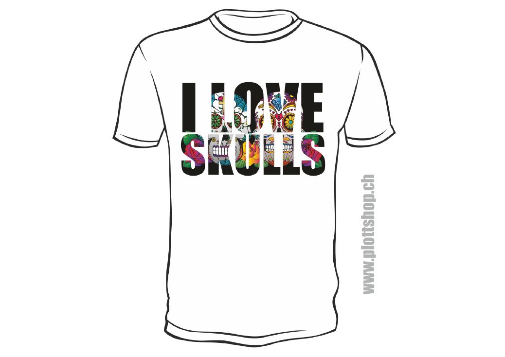 T-Shirt I Love Skulls, Ich liebe Totenschädel