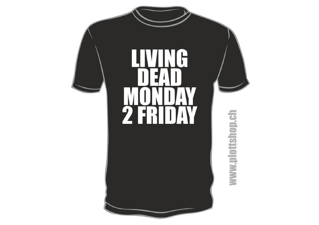 Sie sind hier: Startseite » PLOTT & DRUCK » T-Shirts Shirts T-Shirt Living dead - Monday 2 Friday T-Shirt: rundhals, top QualitätGrössentabellen! Aktion war erfolgreich Das hat leider nicht geklappt. Warenkorb anzeigen Zur Kasse gehen Weiter einkaufen Grössen: S M L XL 2XL 3XL Anzahl: St In den Warenkorb Auf den Merkzettel