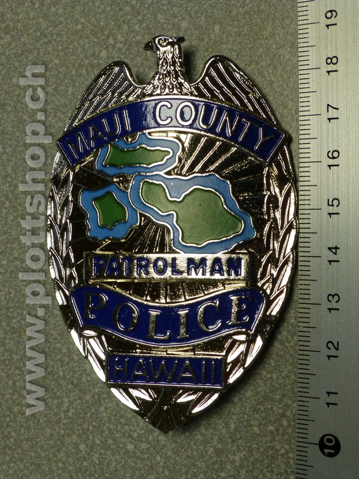 Sie sind hier: Startseite » SAMMELN » Badges Police Police Badge - Patrolman Maui County Hawaii Originalgetreue Sammleranfertigung, in aufwändiger Prägearbeit hergestellt. Absolute Detailtreue und top Verarbeitung. Badge, Abzeichen, schwere Qualität. Für eine grössere Ansicht, klicken Sie auf die Fotos. Aktion war erfolgreich Das hat leider nicht geklappt. Warenkorb anzeigen Zur Kasse gehen Weiter einkaufen Lieferbar in 3-5 Werktagen 90.00 CHF 0% MWST. zzgl. Versand Anzahl: St In den Warenkorb Auf den Merkzettel