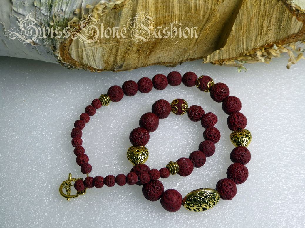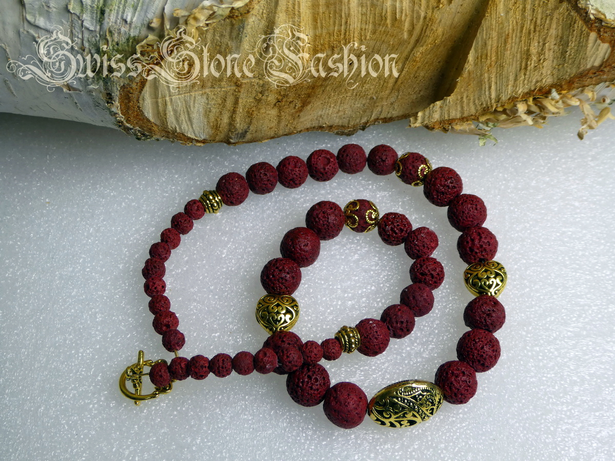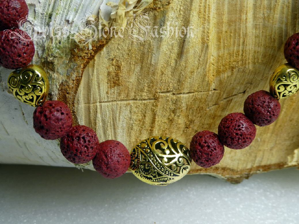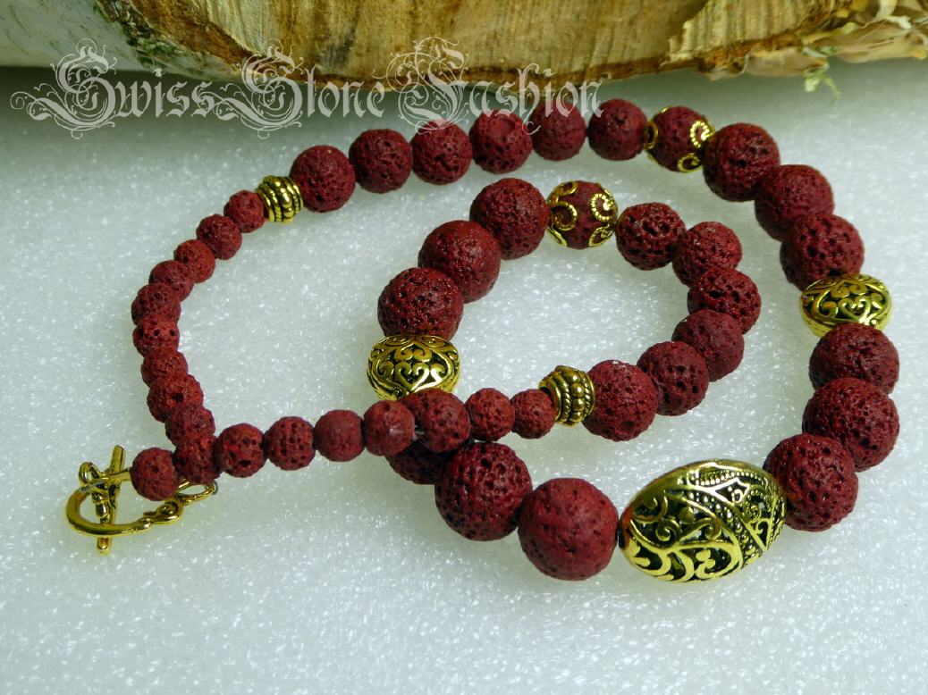 Halskette Lavastein rot