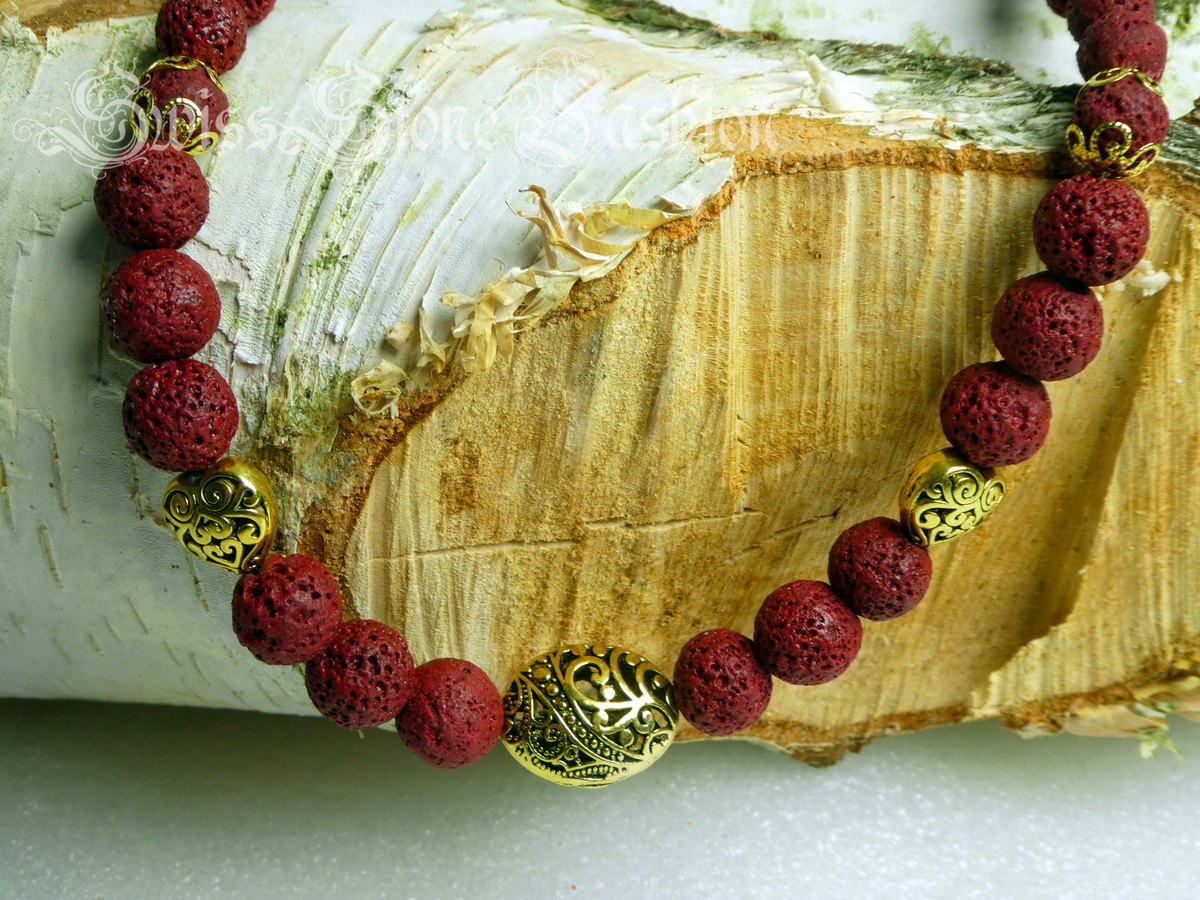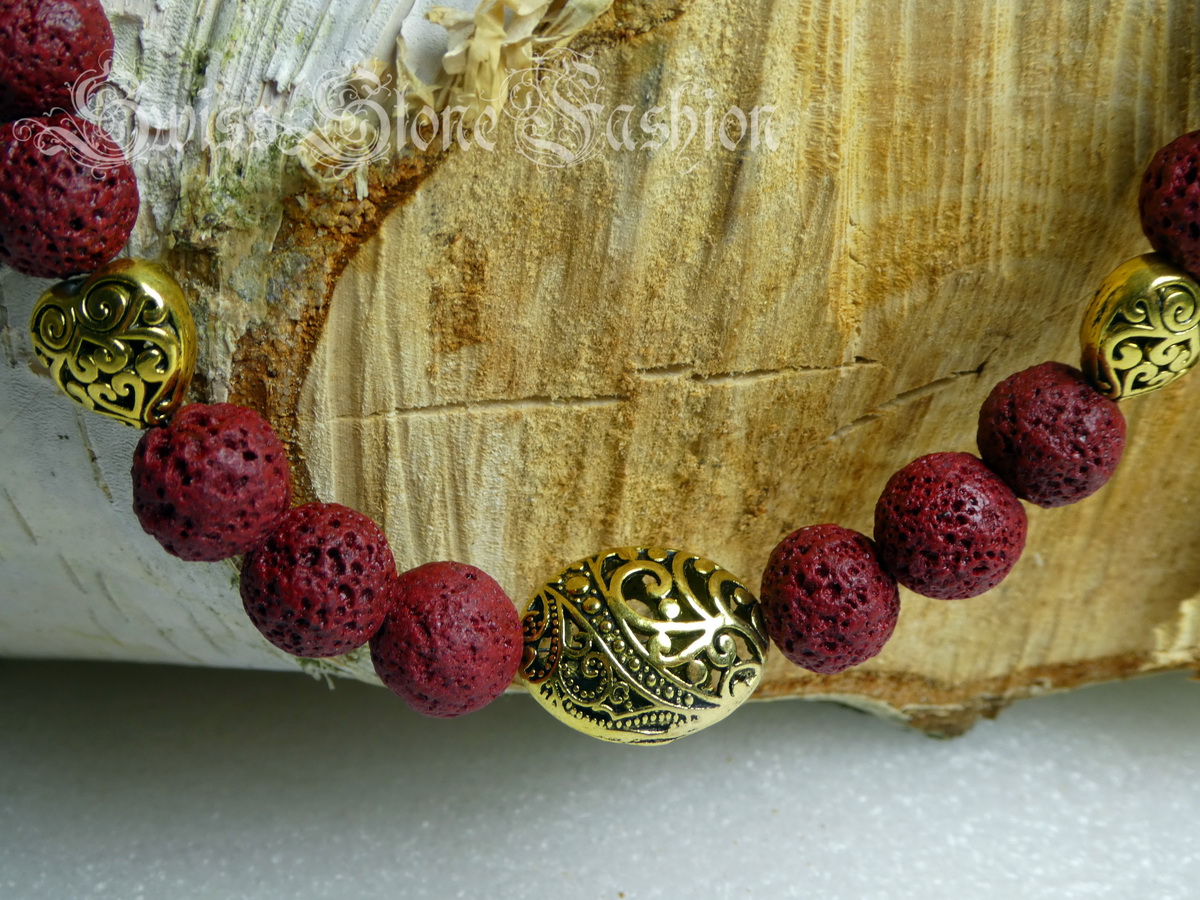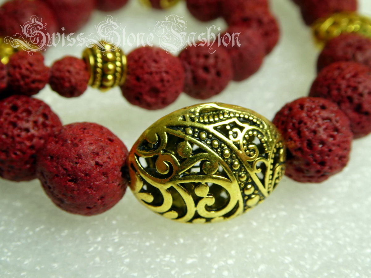 Halskette Lavastein rot