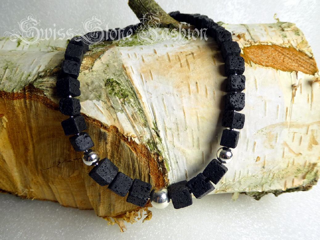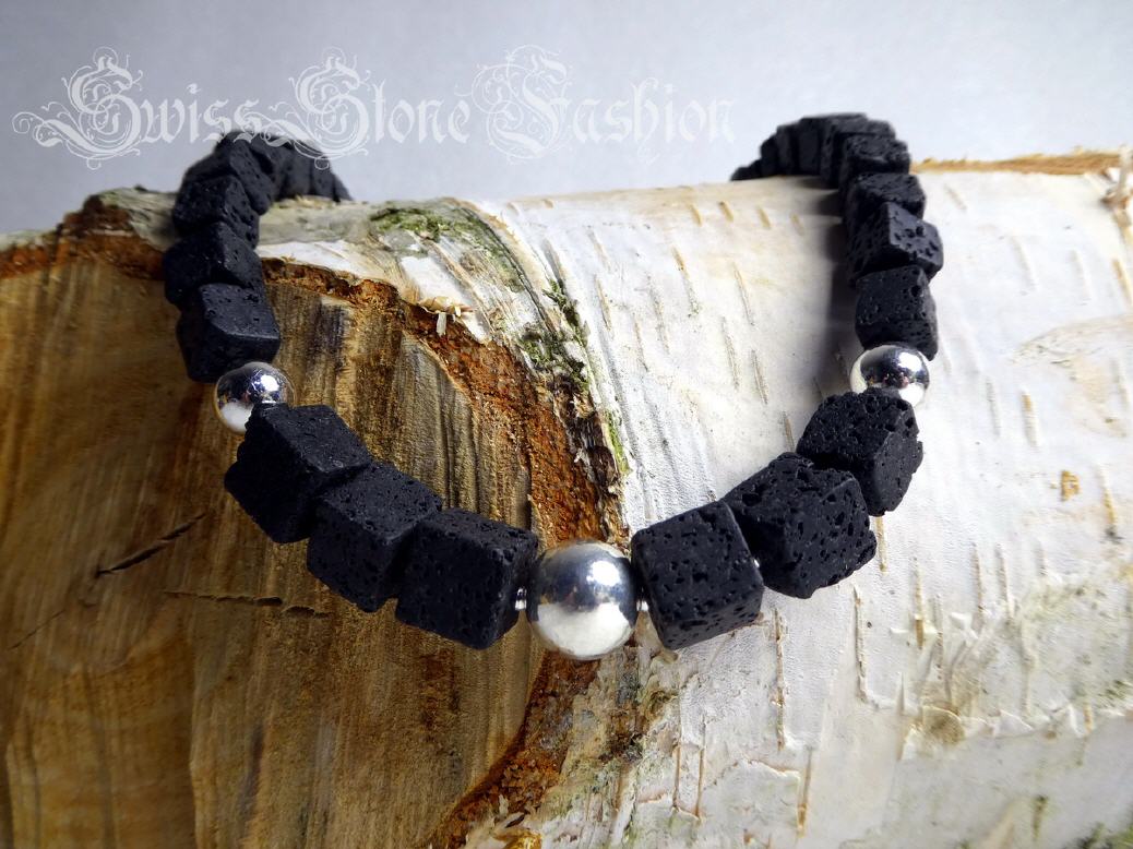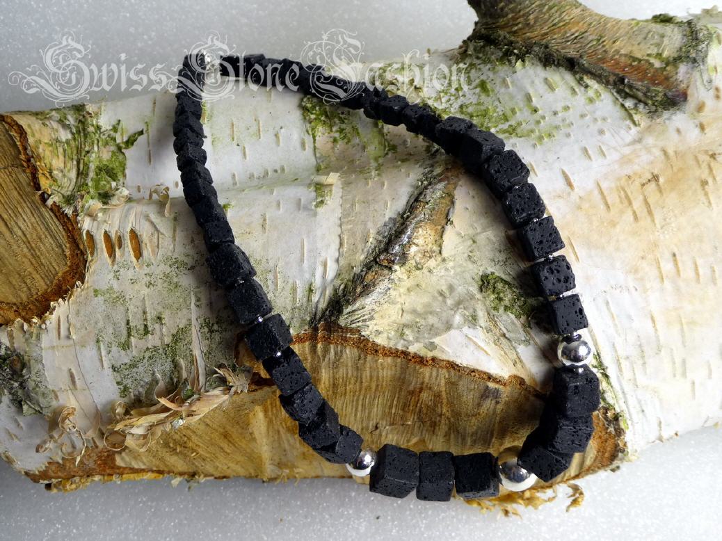 Halskette Lavastein schwarz 40cm Würfel Kugeln