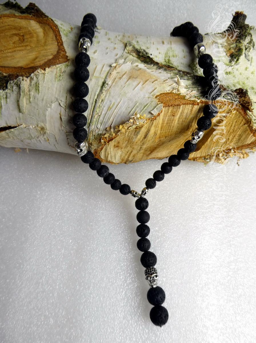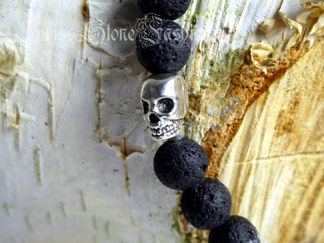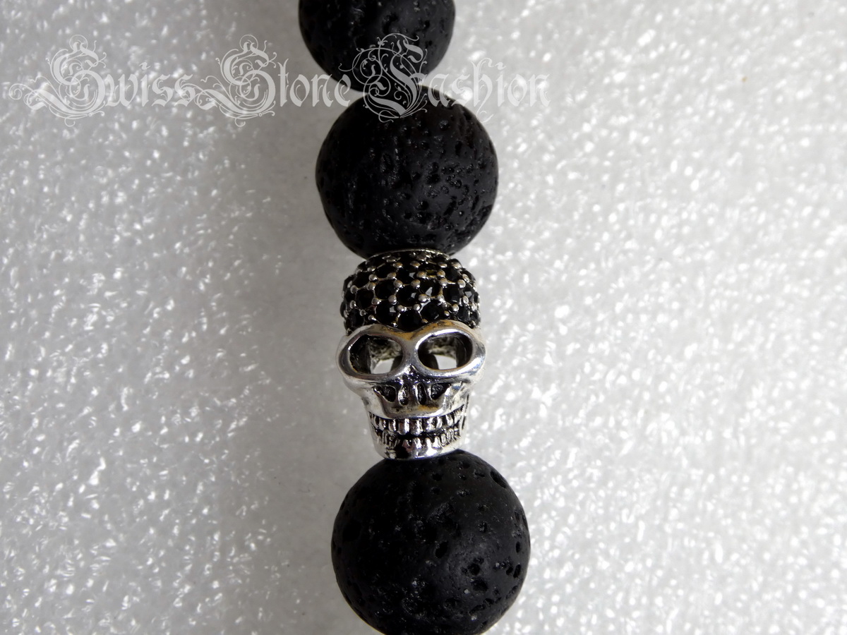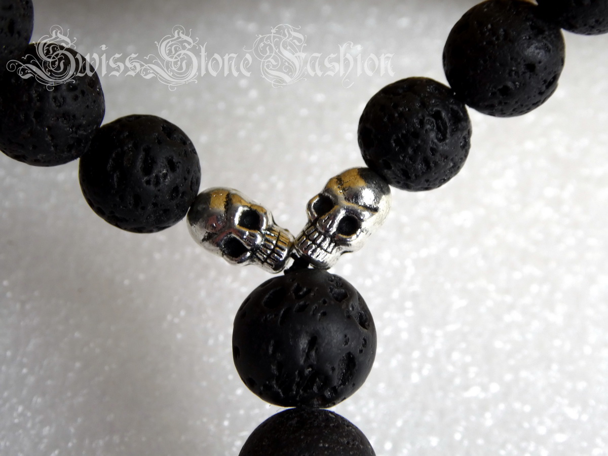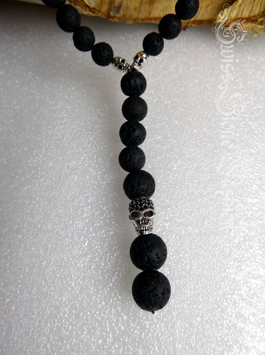 Halskette Lavastein schwarz Skull Totenkopf 52cm