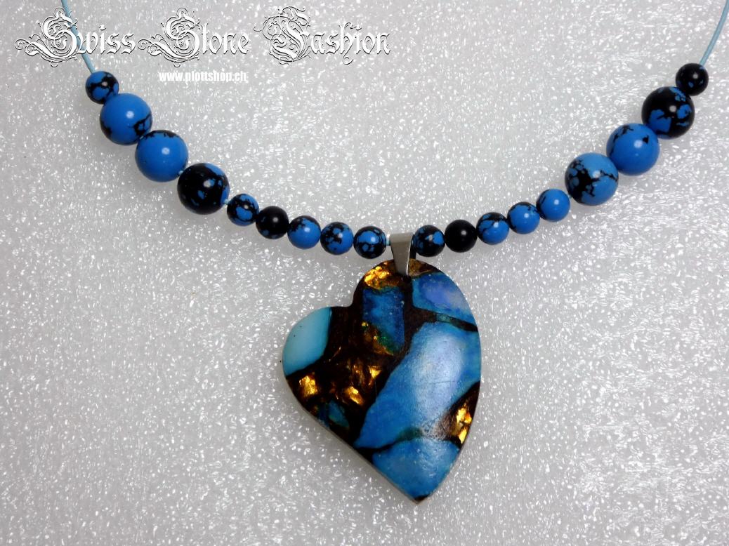 Halskette Naturstein am Edelstahldraht 42cm