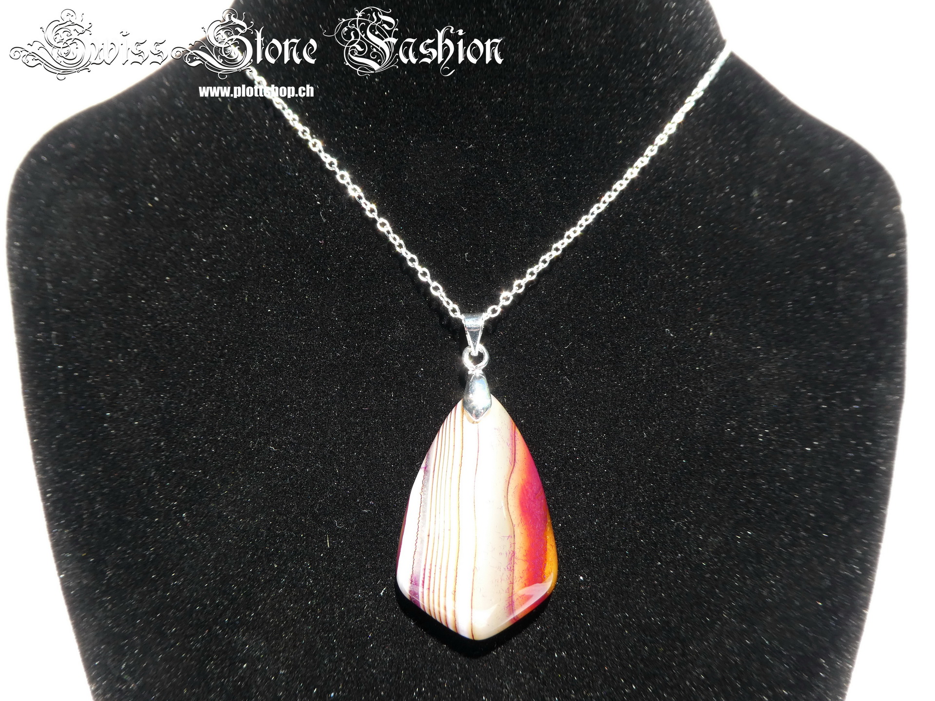 Halskette Stein an Silberkette 48cm